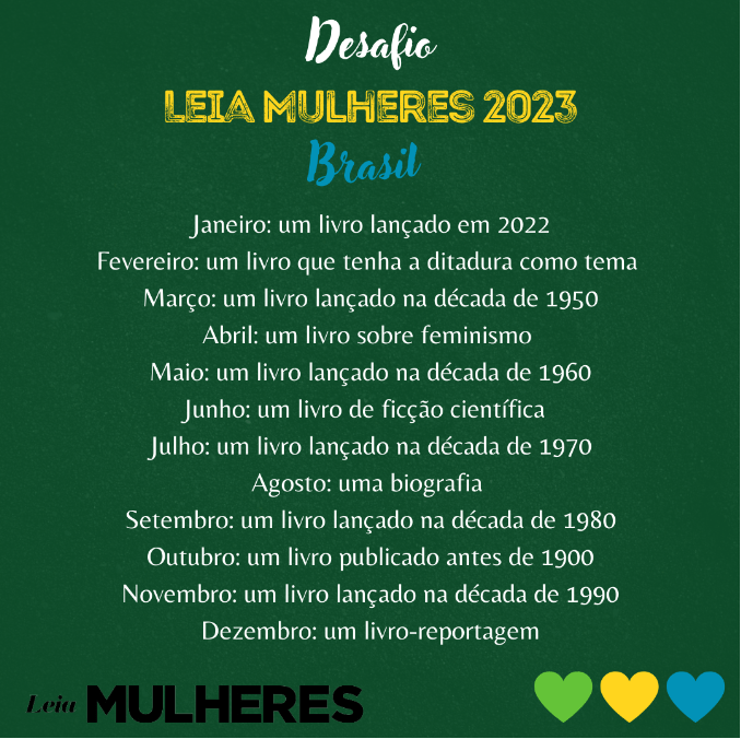 A ideia é simples: a cada mês, colocamos uma categoria para que as pessoas encontrem livros dentro delas. Não é preciso seguir a ordem dos meses ou coisa do gênero, o objetivo é que as pessoas leiam mais mulheres e pesquisem e conheçam mais autoras e editoras. O desafio de 2023 é ainda mais especial nesse sentido: resolvemos que todas as categorias devem ser preenchidas por autoras brasileiras.